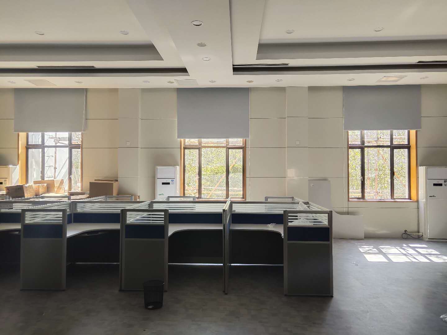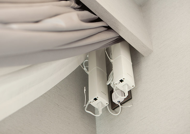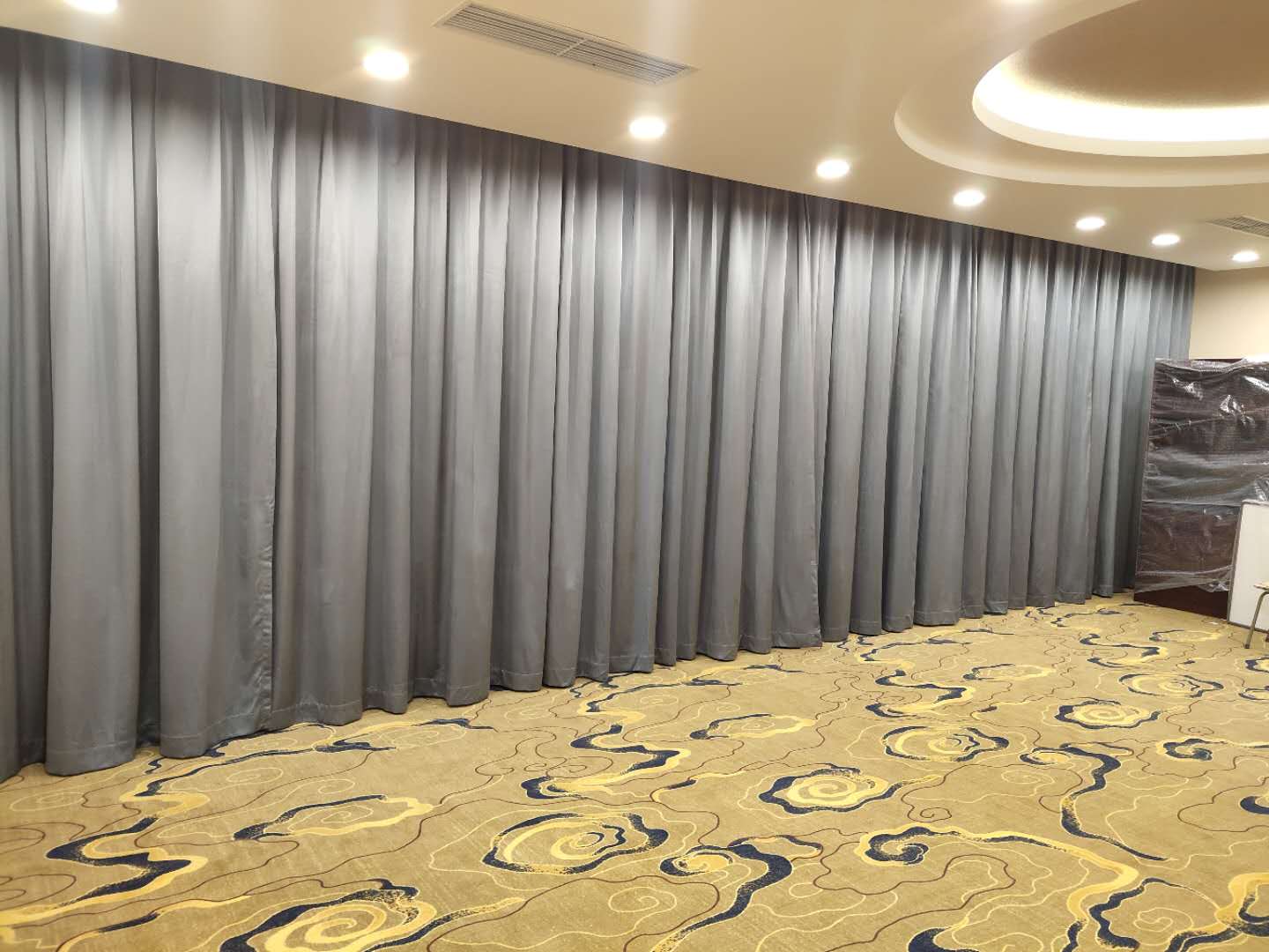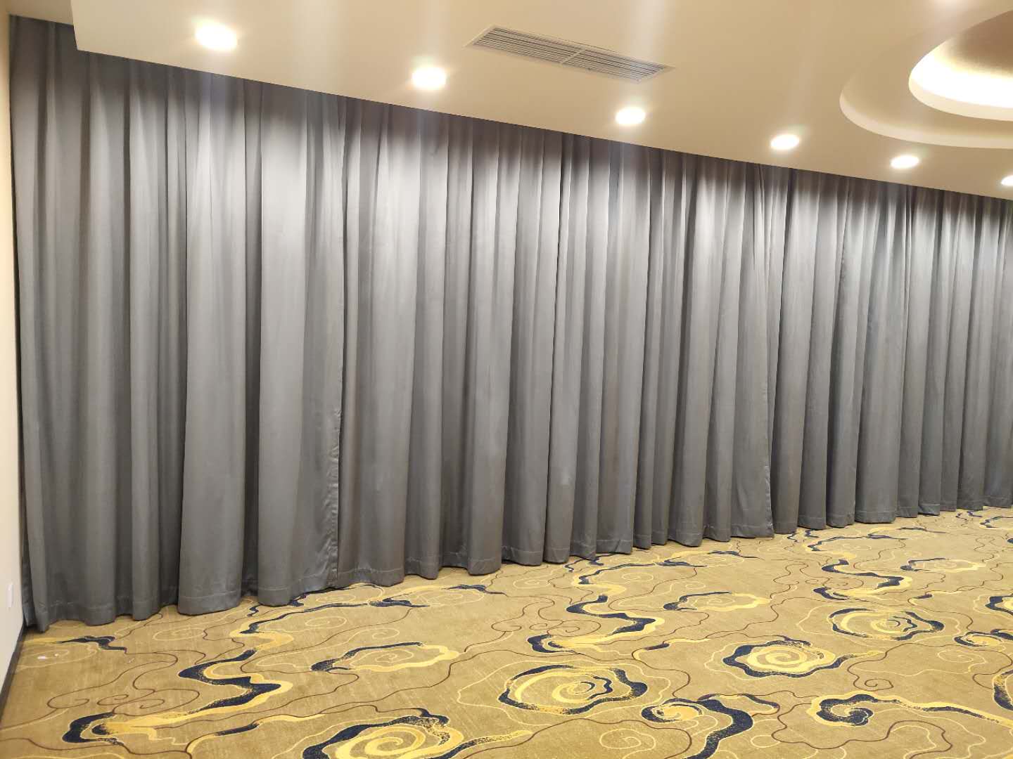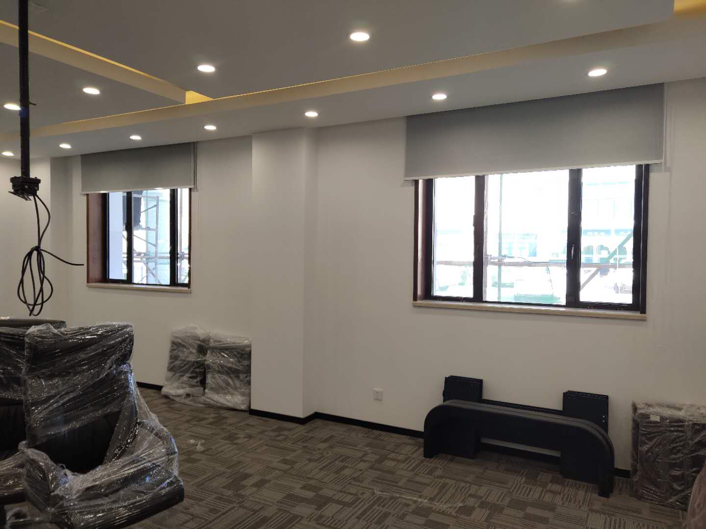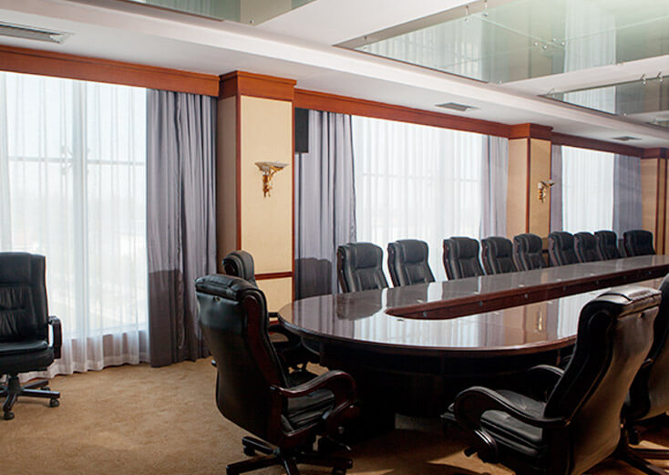 北京星明湖國際會議中心酒店會議室公寓安裝布藝窗簾搭配紗簾、電動開合簾
