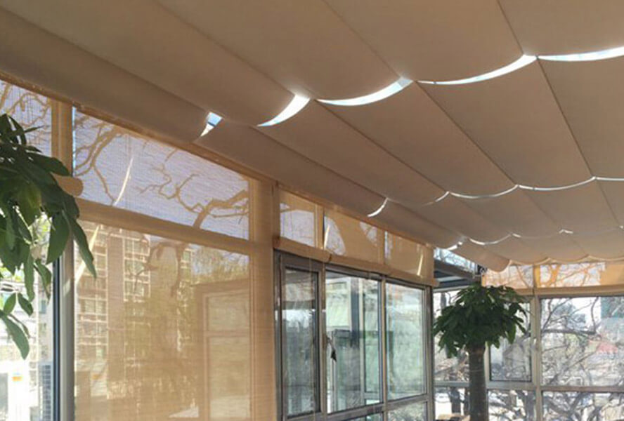天棚簾主要是運(yùn)用在天窗方面的電動遮陽系統(tǒng),根據(jù)運(yùn)行原理可分為卷軸式天棚簾、折疊式天棚簾、葉片翻轉(zhuǎn)式天棚簾等。
