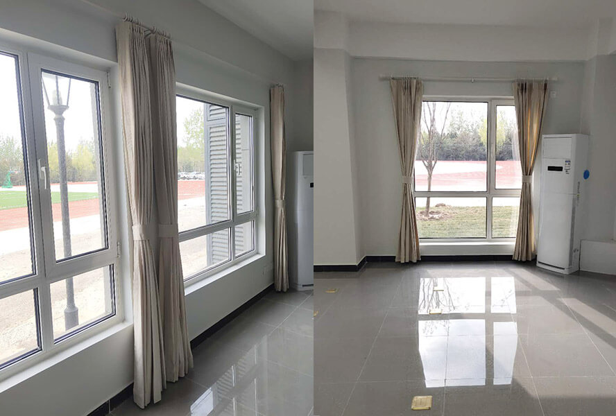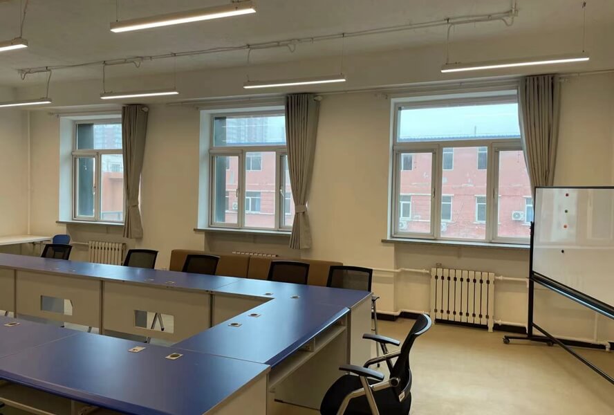 會議室使用布藝窗簾,會使整個會議室更加莊重,能有效地遮光遮陽,其遮光性也為使用投影儀時起到了十分重要的作用。